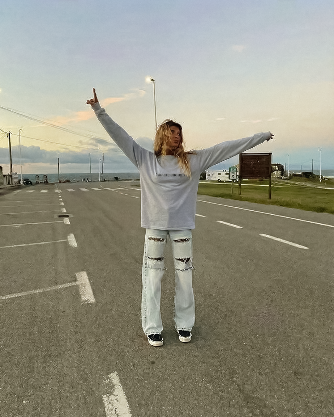 Con el conmovedor mensaje "Querida persona detrás de mí, eres suficiente", esta sudadera con capucha es un recordatorio diario de que eres perfecto tal como eres. Úsala para inspirar a otros y crear una onda de positividad dondequiera que vayas.