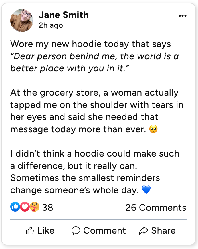 Featuring the heartwarming message, "Dear Person Behind Me, You Are Enough," this hoodie is a daily reminder that you are perfect just the way you are. Wear it to inspire others and create a ripple of positivity everywhere you go